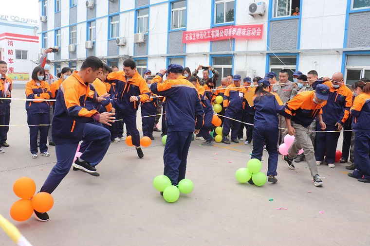 为了庆祝十八周年厂庆,4月29日,石家庄驰远化工有限公司举办了春季趣味运动会,本次运动会以趣味性的竞赛项目为主,有拔河、背篓投球、双人呼啦圈、托球跑、踢毽子和踩气球。比赛现场,队员们充分发扬健康向上、爱拼敢赢、奋力拼搏的体育精神,在同场竞技中义无反顾,勇往直前。喝彩声、加油声此起彼伏,处处洋溢着积极向上、欢快活泼的和谐氛围。驰远人团结协作、顽强拼搏的精神以这种形式充分体现了出来。